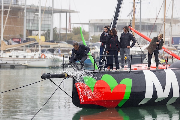 C’est donc d’une main ferme et certaine que le parrain, Jean-René Bernaudeau, entouré des deux marraines Cynthia Lebond et Morgane Gillot, collaboratrices de l’entreprise Maître CoQ, a cassé une bouteille de champagne sur l’étrave de l’IMOCA, libérant le précieux élixir et ses bulles festives. Le rite a donc été effectué dans les règles de l’art ! « Nous vous souhaitons, Yannick et Maître CoQ V, de bonnes navigations. Bon vent ! »