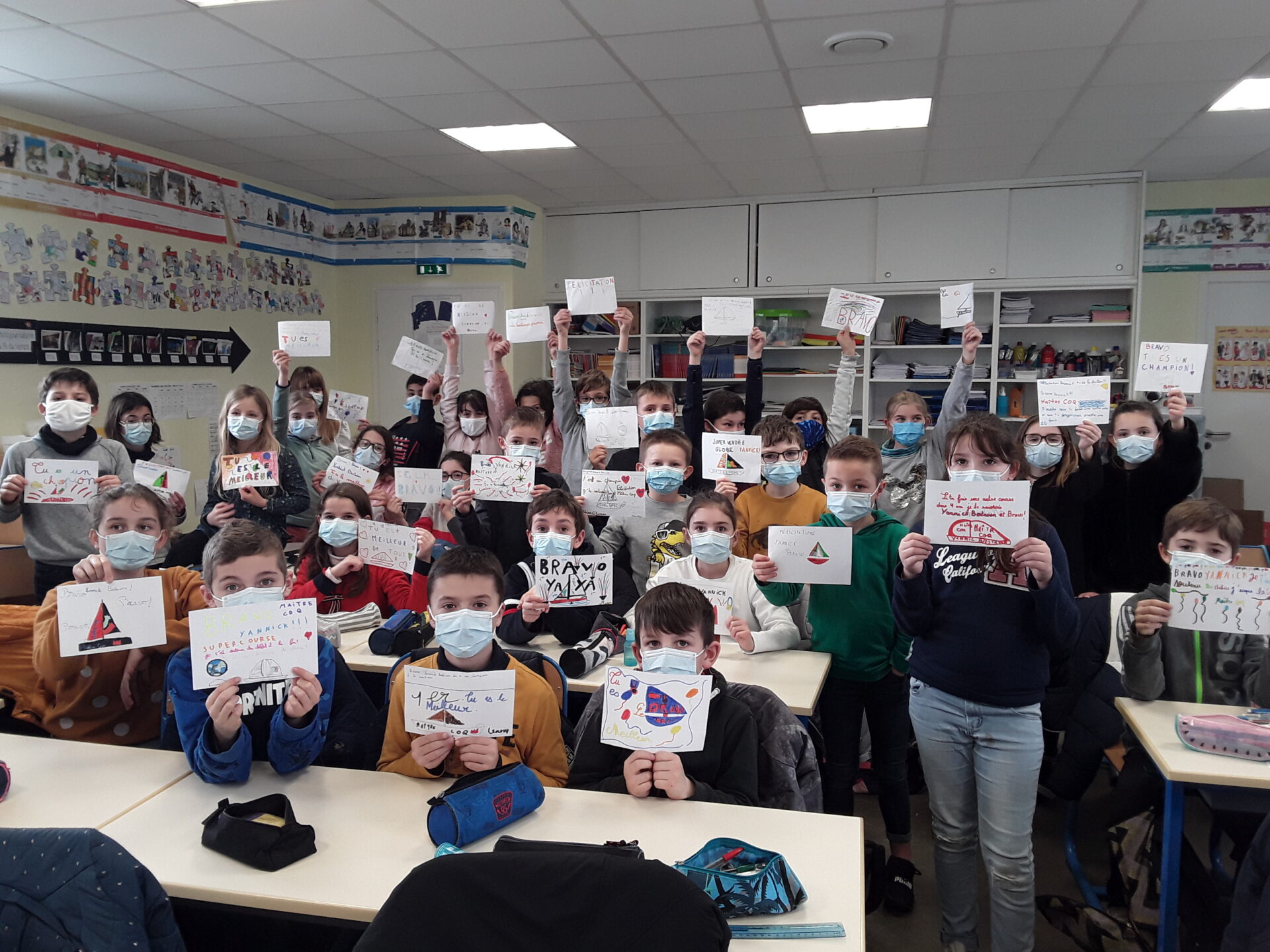 Bonjour Yannick Bestaven je suis Benjamin .Je suis en CM2 et j’espère que tu vas gagner.