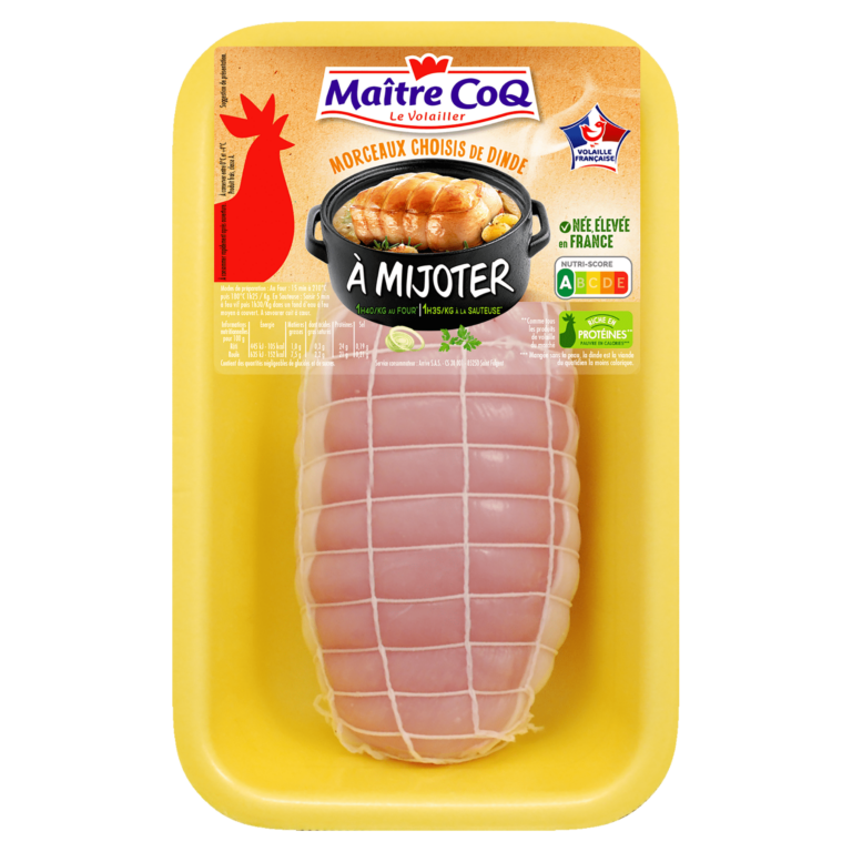De la dinde sélectionnée par Maître CoQ auprès des éleveurs partenaires. L’osso-bucco de dinde est préparé à partir de volaille née et élevée en France. Il est ensuite tranché dans notre atelier. Pour une recette d’osso-bucco en un tour de main, Maître CoQ vous propose de suivre ses vidéos recettes pas à pas à retrouver sur sa chaîne YouTube. La recette de l’osso-bucco à l’orientale et la recette aux champignons et fromage frais sont disponibles sur notre site, en vidéo sur notre chaîne YouTube et sur nos étiquettes.