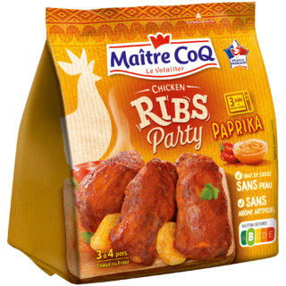 Découvrez les Chicken Ribs Party nature, du haut de cuisse de poulet rôti SANS peau. Facile à grignoter avec les doigts, il sera gourmand pour agrémenter vos apéritifs dînatoires et pratique en cœur de repas, pour varier les plats du quotidien. Prêt à consommer, vous pouvez les déguster froids ou chauds (seulement 3 minutes au micro-ondes)! Et pour varier les saveurs, découvrez les Chicken Ribs Party goût paprika.