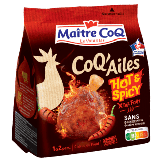 Le CoQ’Ailes Croustillant, c’est quoi ? Du poulet origine France, de beaux manchons (partie la plus charnue de l’aile), sans peau, avec l’os dégagé, enrobés d’une chapelure légère et extra-croustillante : 10 minutes au four traditionnel, et vous obtenez un vrai morceau de poulet pané, facile à grignoter, un super « fast-food » à la maison à consommer de manière totalement décomplexée !