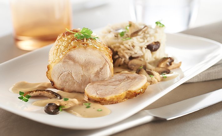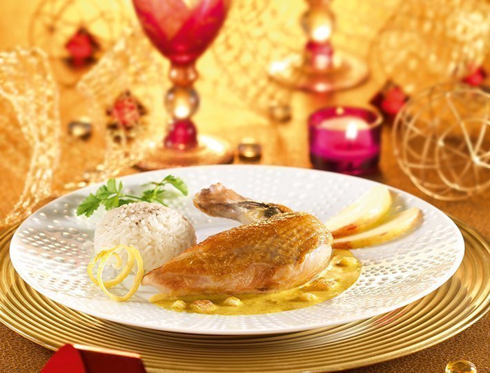 Suprêmes de chapon, crème de châtaignes et sauce foie gras