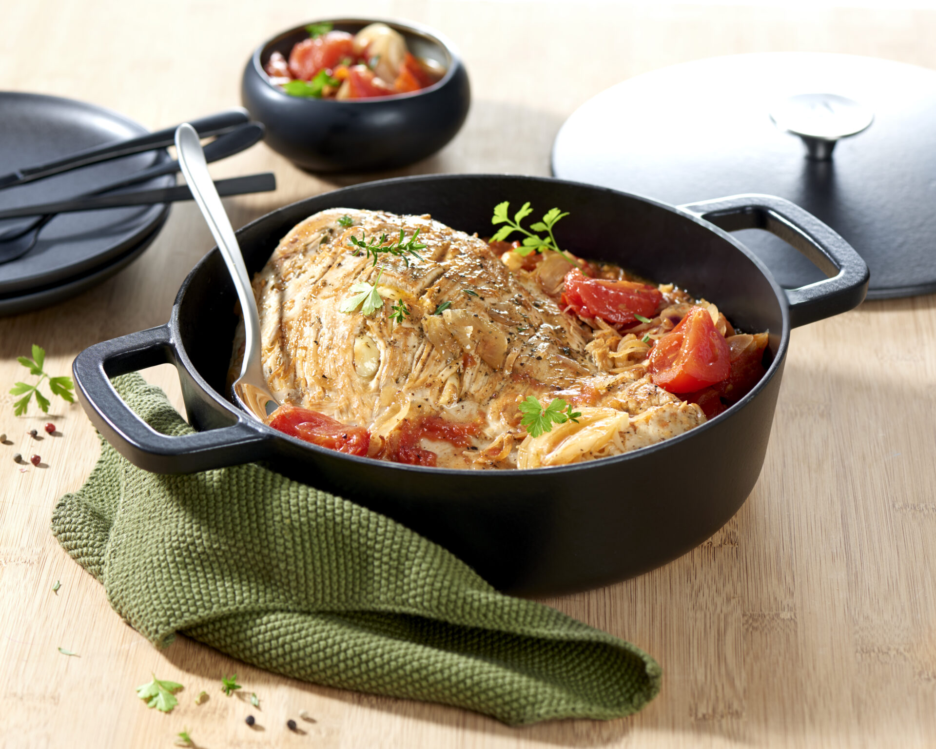 - Rectifiez l’assaisonnement si besoin, servez directement dans la cocotte.