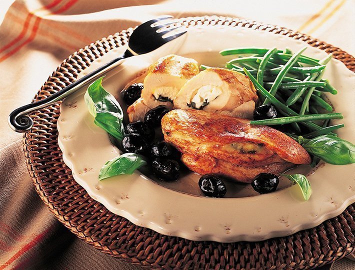 - Salez, poivrez et ajoutez les olives noires quelques minutes avant de servir. Accompagnez d’haricots verts, vos Escalopes de poulet au chèvre et au basilic.